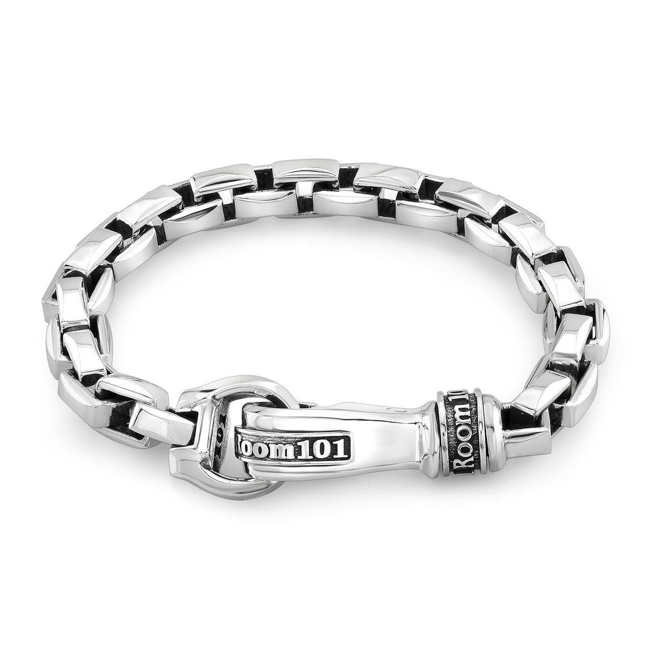 Sterling silver, hand lapped finish, spring loaded D Clasp closure.