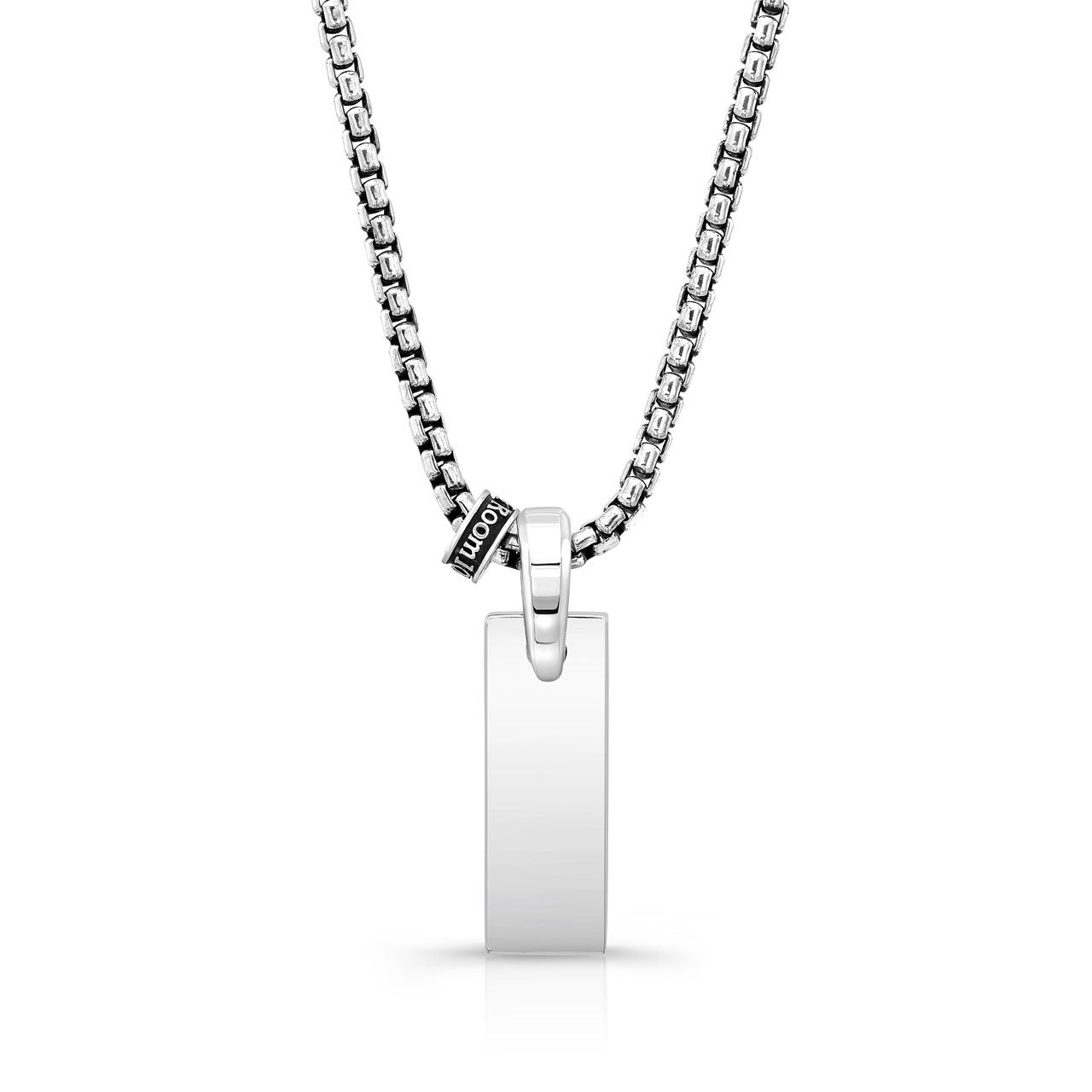 A stylish slab of sterling silver to fly solo or stack up with other fanciful neck hangers.