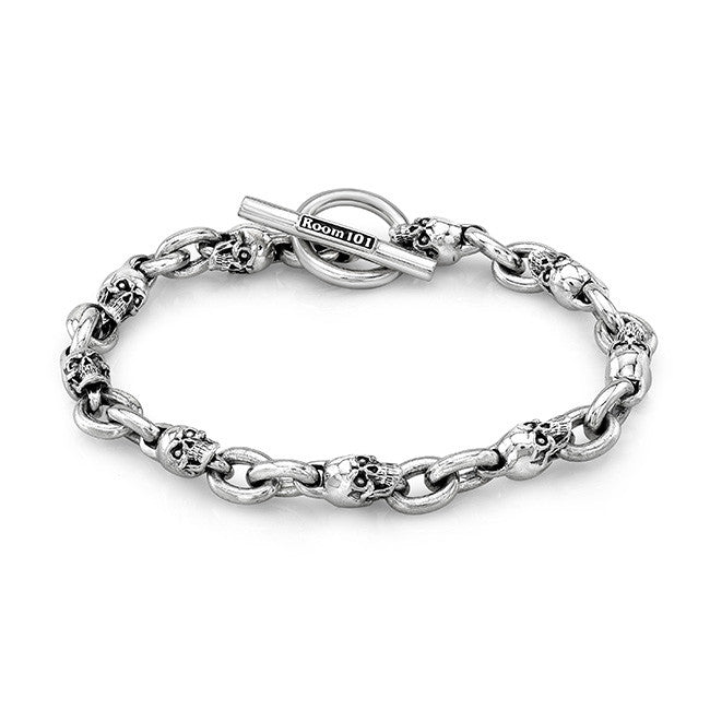 Room101 .925 sterling silver men's skull & 2 links bracelet.